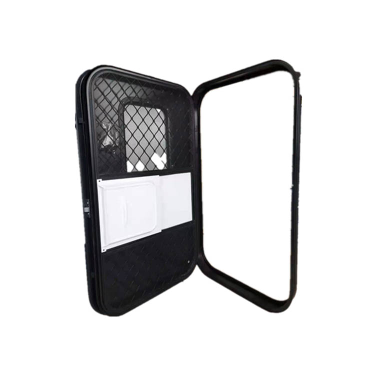 Entry door for teardrop and squaredrop campers. These are the doors we use on our own campers. The window is E-marked and the outer skin is black.